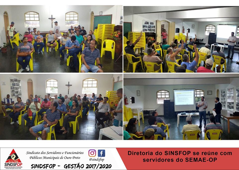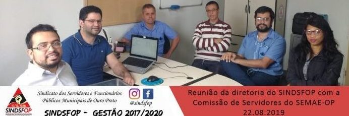 Aconteceu no dia 25/10/2019, na sede do SINDSFOP, reunião entre a diretoria do sindicato e os servidores do SEMAE-OP. A pauta da reunião foi a deliberação sobre a minuta do projeto de lei (PL) de extinção do SEMAE-OP e o enquadramento dos servidores da autarquia na Prefeitura Municipal de Ouro Preto. Foi apresentada a minuta […]