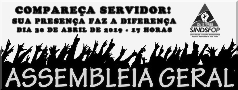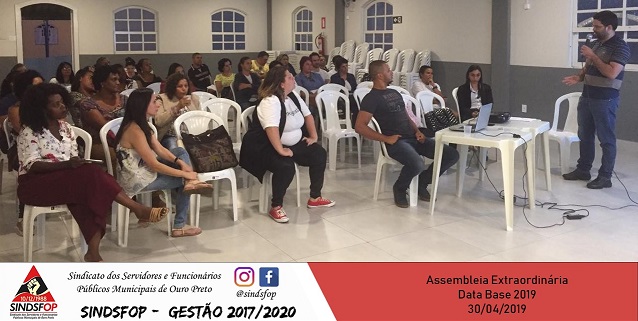 No dia 30/04/2019, terça-feira, às 17h30min, aconteceu Assembleia Geral Extraordinária para discutir contraproposta oferecida pelo Município de Ouro Preto, referente à Data Base 2019, para os servidores da Prefeitura Municipal de Ouro Preto e SEMAE. Após as considerações e debates realizados pelos presentes, foi deliberada a aprovação integral da contraproposta (anexo) oferecida pelo Município de […]